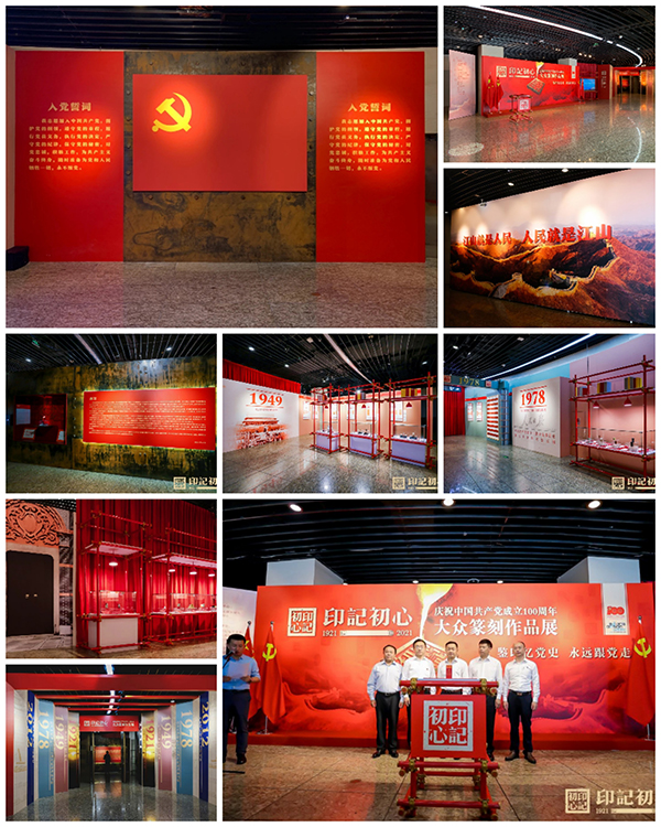 近年來,大眾篆刻普及推廣取得了可喜的成果,推動了篆刻藝術走向大眾,使越來越多的人喜愛上了篆刻藝術,弘揚中國印文化正在逐漸成為新的社會風尚。大眾篆刻志愿者們以篆刻這種古老而新穎的藝術形式,獨具特色、提綱挈領地展示中國共產黨的百年歷程,幫助參觀者從展覽中感悟中國共產黨篳路藍縷、披荊斬棘、艱苦創業、砥礪前行的奮斗精神、崇高使命和輝煌成就,激勵大家在中國特色社會主義新時代,不忘初心、牢記使命、永遠奮斗,為中華民族偉大復興做出新的更大的貢獻。