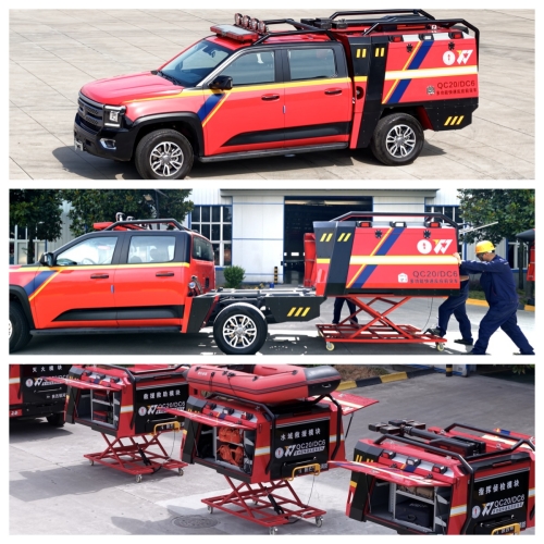 高機動排水搶險車是一款新型排水搶險車,該車集搶險、排澇為一體,車輛通過性好,涉水深度大;體積小,結構緊湊,能進入小空間區域,快速清除城市道路、地下車庫、隧道等低洼區域的積水,展開清淤工作,恢復道路暢通。